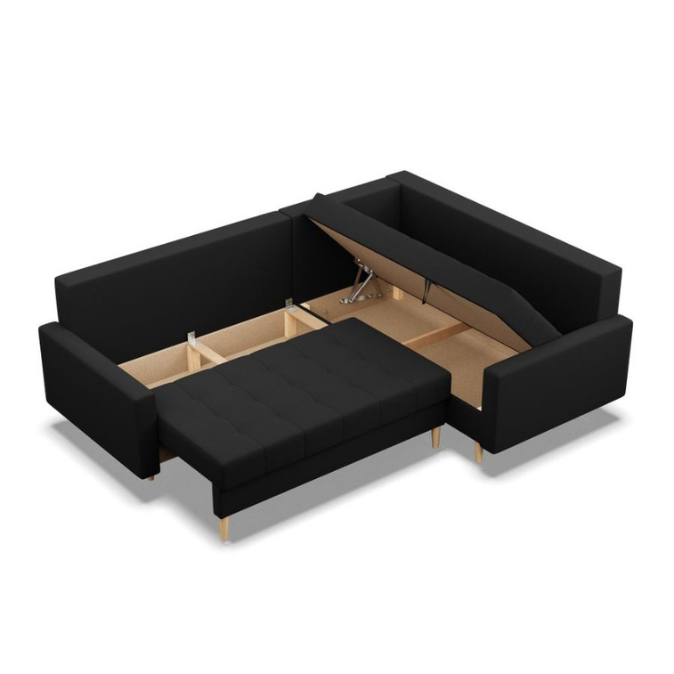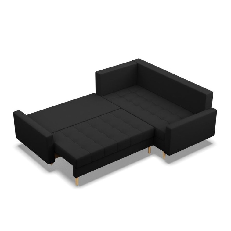 Pevná konštrukcia z dreva a OSB dosky. Poťah z kvalitnej látky Lux v moderných farebných odtieňoch. Možnosť zvolenia ľavého alebo pravého variantu. Jednoduché rozkladanie pohovky na lôžkovú podobu. Moderný škandinávsky dizajn vhodný do všetkých súčasných interiérov.