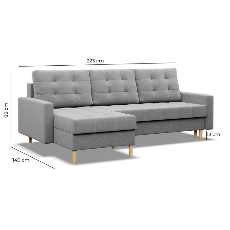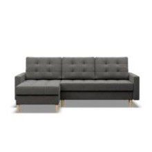 Pevná konštrukcia z dreva a OSB dosky. Poťah z kvalitnej látky Lux v moderných farebných odtieňoch. Pri montáži monžnosť zvolenie ľavej alebo pravej strany. Jednoduché rozkladanie pohovky na lôžkovú podobu. Moderný škandinávsky dizajn vhodný do všetkých súčasných interiérov.
