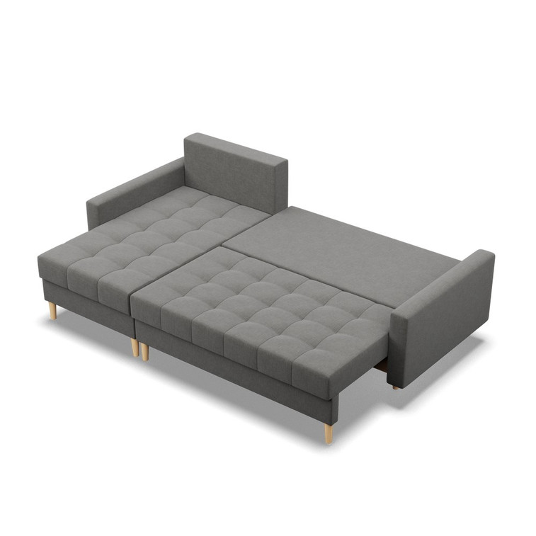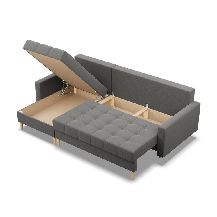 Pevná konštrukcia z dreva a OSB dosky. Poťah z kvalitnej látky Lux v moderných farebných odtieňoch. Pri montáži monžnosť zvolenie ľavej alebo pravej strany. Jednoduché rozkladanie pohovky na lôžkovú podobu. Moderný škandinávsky dizajn vhodný do všetkých súčasných interiérov.