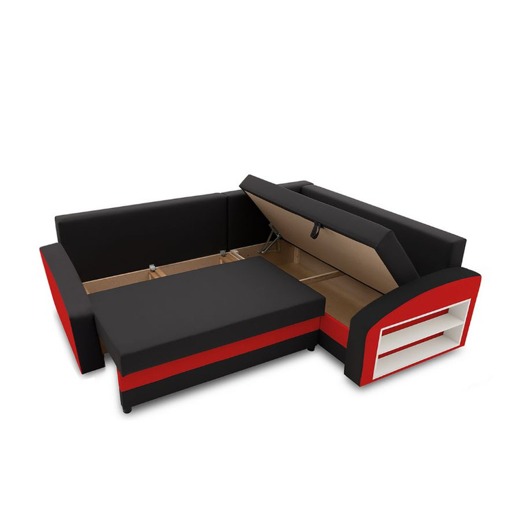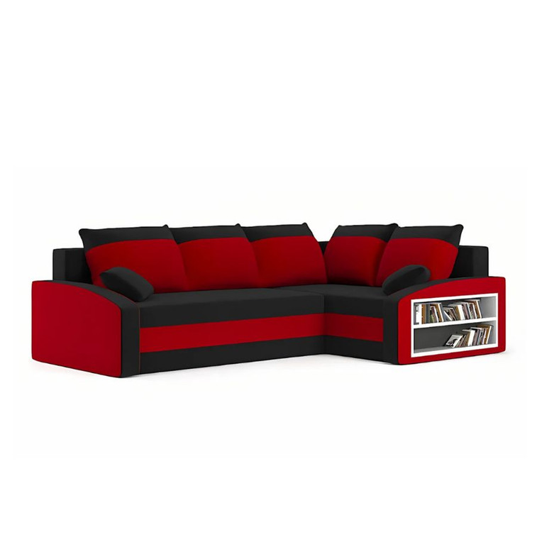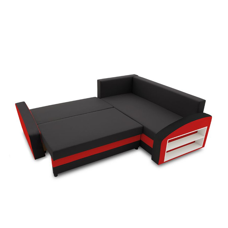 Rozkladacia rohová sedacia súprava s poličkou GRANDE Pravá Čierna/červená