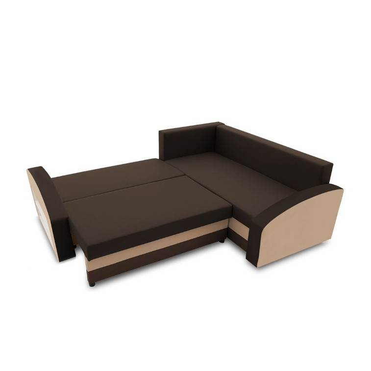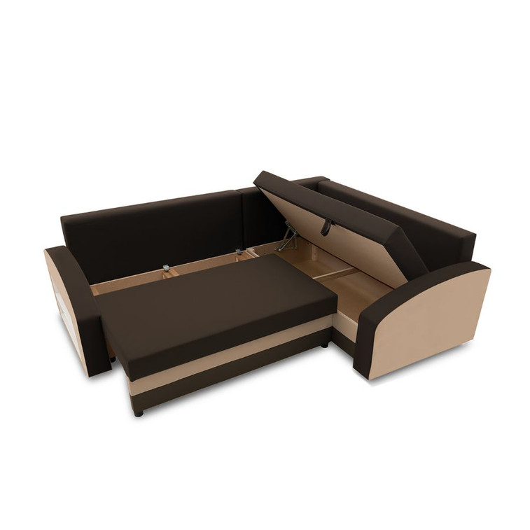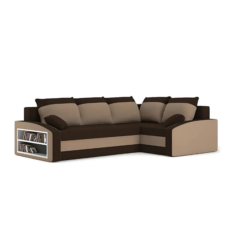 Pevná konštrukcia z dreva a OSB dosiek.Poťah z kvalitnej látky v mnohých moderných farebných odtieňoch. Jednoduché rozkladanie pohovky na lôžkovú podobu. Poličkysú umiestnené na boku sedačky. Moderný dezajn vhodný do všetkých súčasných interiérov.