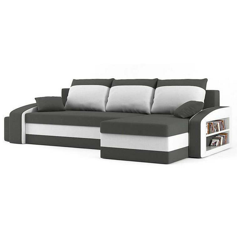 Rozkladacia rohová sedacia súprava s taburetkami a poličkou HEWLET Sivá/biela Pravá