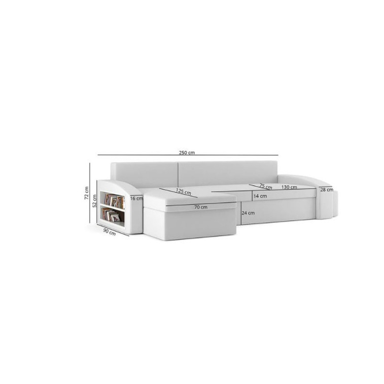 Rohová rozkladacia sedacia súprava Hewlet. Pevná konštrukcia z dreva a OSB dosky. Poťah z kvalitnej látky Haiti v mnohých moderných farebných odtieňoch. Možnosť zvolenia ľavého alebo pravého variantu. Jednoduché rozkladanie pohovky na lôžkovú podobu. Praktické taburety a polička sú umiestnené v bočniciach sedačky. Moderný dizajn vhodný do všetkých súčasných interiérov.