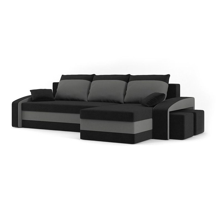 Rozkladacia rohová sedacia súprava s taburetkami Hewlet Čierna/šedá Pravá