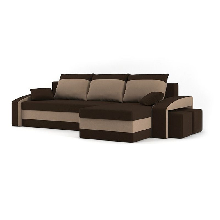 Rozkladacia rohová sedacia súprava s taburetkami Hewlet Hnedá/cappuccino Pravá