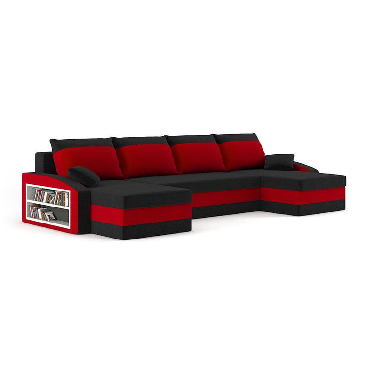 Rozkladacia rohová sedacia súprava SPARTAN s poličkou model 2 Čierna/červená