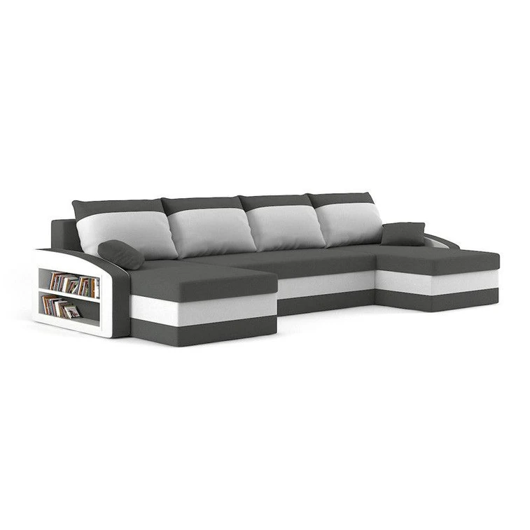 Rozkladacia rohová sedacia súprava SPARTAN s poličkou model 2 Sivá/biela