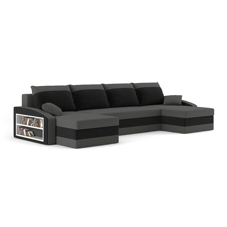 Rozkladacia rohová sedacia súprava SPARTAN s poličkou model 2 Sivá/čierna