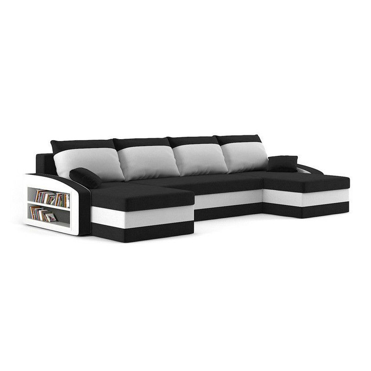 Rozkladacia rohová sedacia súprava SPARTAN s taburetkami a poličkou model 2 Čierna/biela