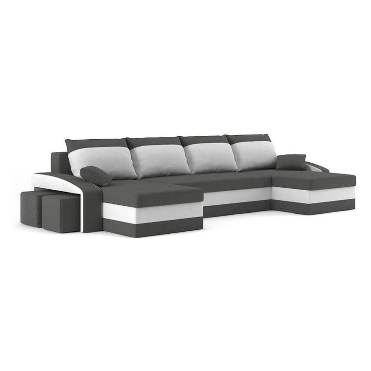 Rozkladacia rohová sedacia súprava SPARTAN s taburetkami model 2 Sivá/biela