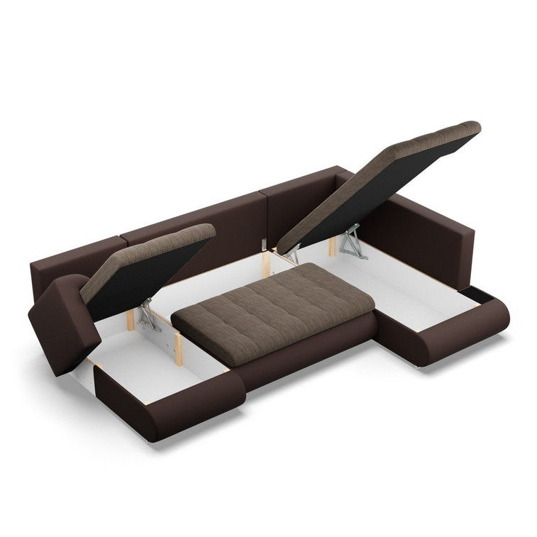 Pevná konštrukcia z dreva a OSB dosky. Poťah z kvalitnej tkaniny v mnohých moderných farebných odtieňoch. Sedacia časť je prešívaná. Jednoduché rozkladanie sedacej súpravy na lôžkovú podobu. Moderný dizajn vhodný do všetkých súčasných interiérov.