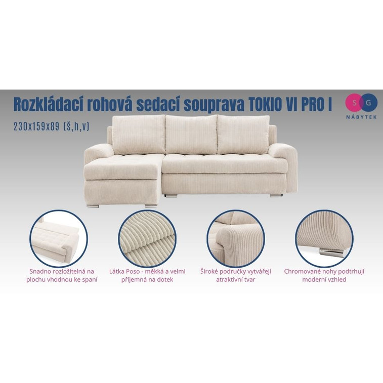 Rozkladacia rohová sedacia súprava TOKIO VI PRO I.
