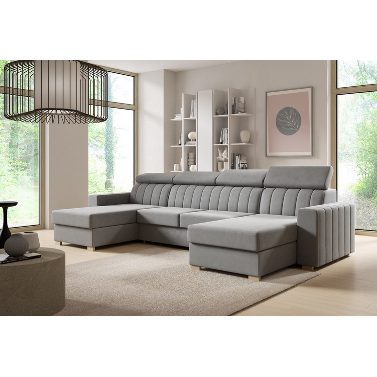 Pevná konštrukcia z dreva a OSB dosky. Jednoduché rozkladanie sedacej súpravy na lôžkovú podobu. Moderný dizajn vhodný do všetkých súčasných interiérov. Nastaviteľné opierky hlavy.