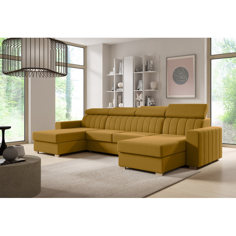 Pevná konštrukcia z dreva a OSB dosky. Jednoduché rozkladanie sedacej súpravy na lôžkovú podobu. Moderný dizajn vhodný do všetkých súčasných interiérov. Nastaviteľné opierky hlavy.