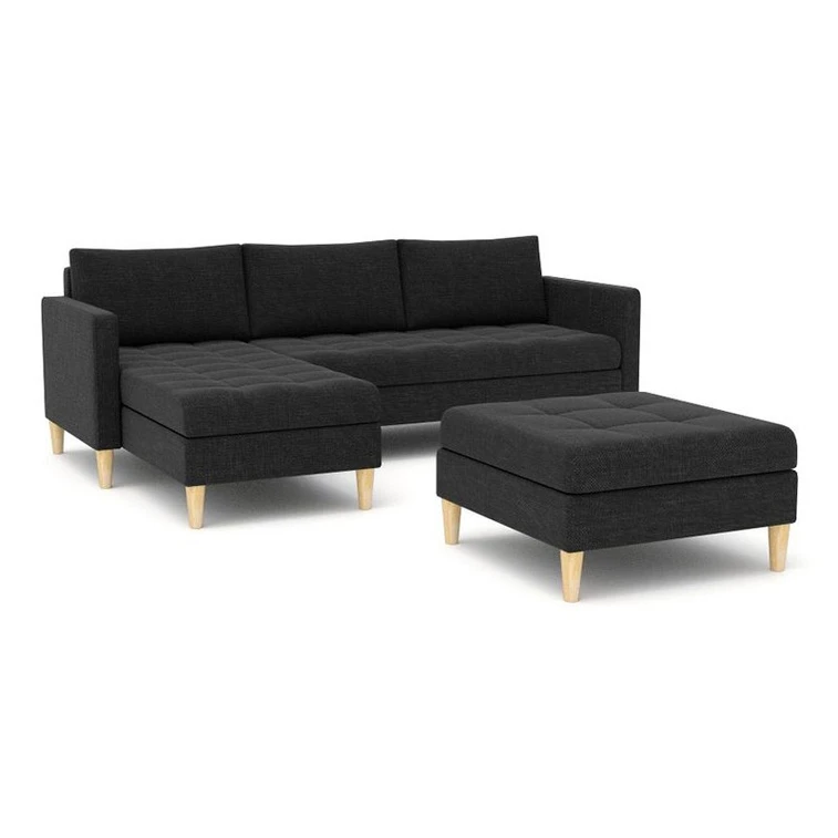 Rozkladacia sedacia súprava OSLO s veľkou taburetkou Ľavá Čierna