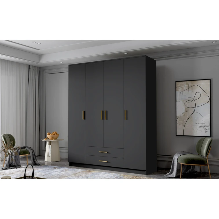 Šatníková skriňa ADA I 160 cm - čierna / zlaté úchytky.