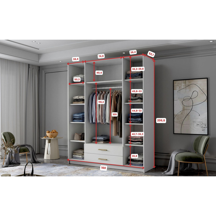 Šatníková skriňa kombinuje klasickú jednoduchosť a moderný dizajn. Je ideálna ako šatníková skriňa do predsiene alebo miesto na uloženie oblečenia v spálni alebo iných drobností každodennej potreby.