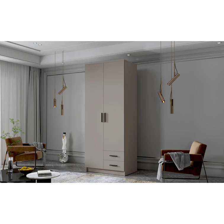 Šatníková skriňa kombinuje klasickú jednoduchosť a moderný dizajn.Je ideálna ako šatníková skriňa do predsiene alebo miesto na uloženie oblečenia v spálni alebo iných drobností každodennej potreby. Šatníková skriňa je rozdelená na dve časti. Na jednej strane sú police a dve zásuvky, a na druhej strane je závesná šatníková tyč a police.