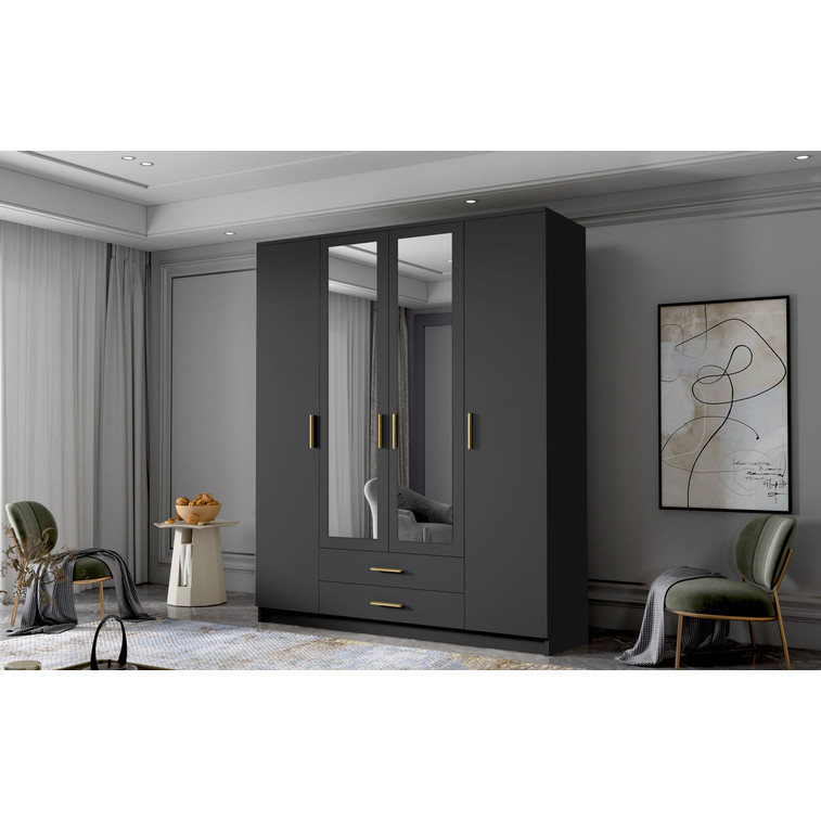 Šatníková skriňa ADA II 160 cm - čierna / zlaté úchytky.