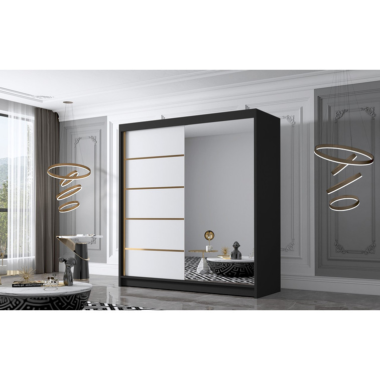 Posuvná šatníková skriňa BALI III kombinuje klasickú jednoduchosť a moderný dizajn. Zrkadlo umiestnené na dverách dodáva svoje jedinečné kúzlo. Je ideálna ako šatníková skriňa do predsiene alebo miesto na uloženie oblečenia v spálni alebo iných drobností každodennej potreby. Vnútro šatníkovej skrine je rozdelené na dve rovnaké časti. Na jednej strane sú police a na druhej strane je závesná šatníková tyč.