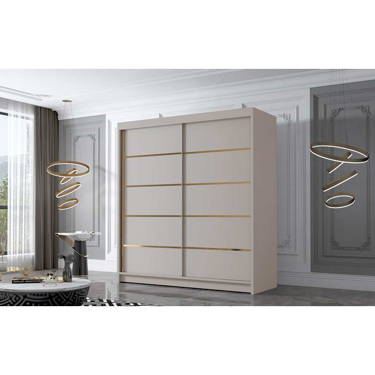 Posuvná šatníková skriňa Bali IV kombinuje klasickú jednoduchosť a moderný dizajn. Je ideálna ako šatníková skriňa do predsiene alebo miesto na uloženie oblečenia v spálni alebo iných drobností každodennej potreby. Vnútro šatníkovej skrine je rozdelené na dve rovnaké časti. Na jednej strane sú police a na druhej strane je závesná šatníková tyč.
