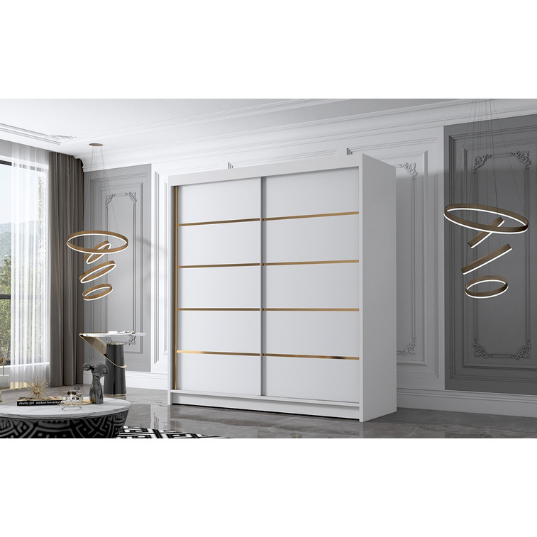 Posuvná šatníková skriňa Bali IV kombinuje klasickú jednoduchosť a moderný dizajn. Je ideálna ako šatníková skriňa do predsiene alebo miesto na uloženie oblečenia v spálni alebo iných drobností každodennej potreby. Vnútro šatníkovej skrine je rozdelené na dve rovnaké časti. Na jednej strane sú police a na druhej strane je závesná šatníková tyč.