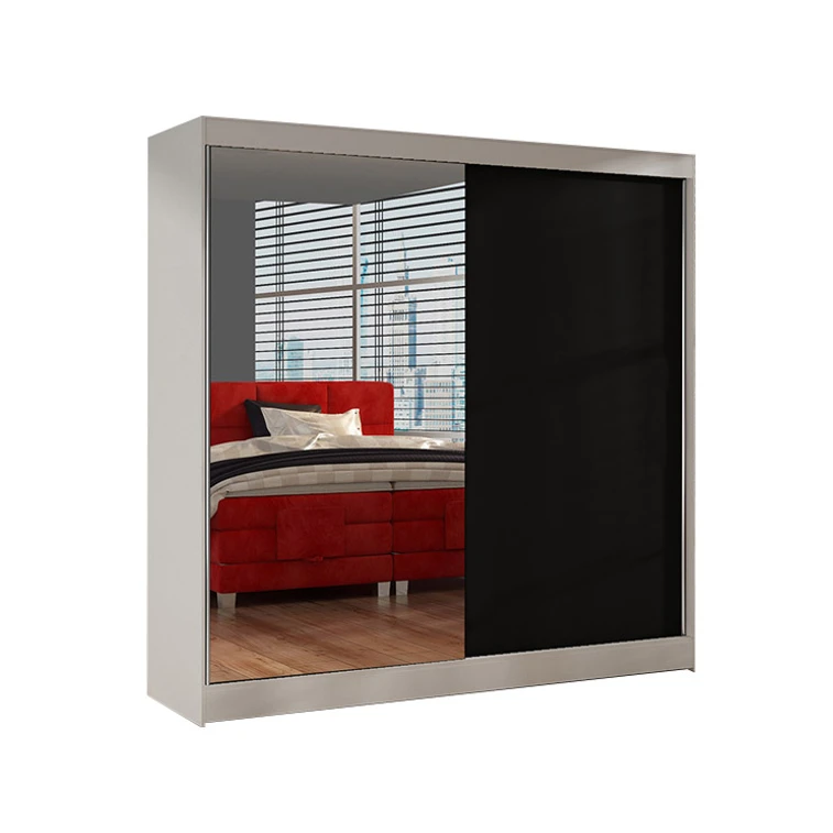 Priestranná šatníková skriňa BASTI I je vyrobená v modernom dizajne a ponúka veľké množstvo praktického úložného priestoru (viď obrázok). Neoceniteľný je systém trendových posuvných dverí so zrkadlom, ktoré uľahčujú manipuláciu a šetria priestor v interiéri. Korpus a dvere sú vyrobené z kvalitného lamina (16 mm). Šatníková skriňa BASTI I môže doplniť existujúce vybavenie izby. Údržba je jednoduchá, povrch je ľahko umývateľný, odolný voči pôsobeniu vody a zvýšenej teplote. Skriňa je dodávaná v demonte a v rôznom farebnom prevedení.