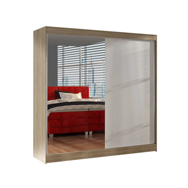Priestranná šatníková skriňa BASTI I je vyrobená v modernom dizajne a ponúka veľké množstvo praktického úložného priestoru (viď obrázok). Neoceniteľný je systém trendových posuvných dverí so zrkadlom, ktoré uľahčujú manipuláciu a šetria priestor v interiéri. Korpus a dvere sú vyrobené z kvalitného lamina (16 mm). Šatníková skriňa BASTI I môže doplniť existujúce vybavenie izby. Údržba je jednoduchá, povrch je ľahko umývateľný, odolný voči pôsobeniu vody a zvýšenej teplote. Skriňa je dodávaná v demonte a v rôznom farebnom prevedení.
