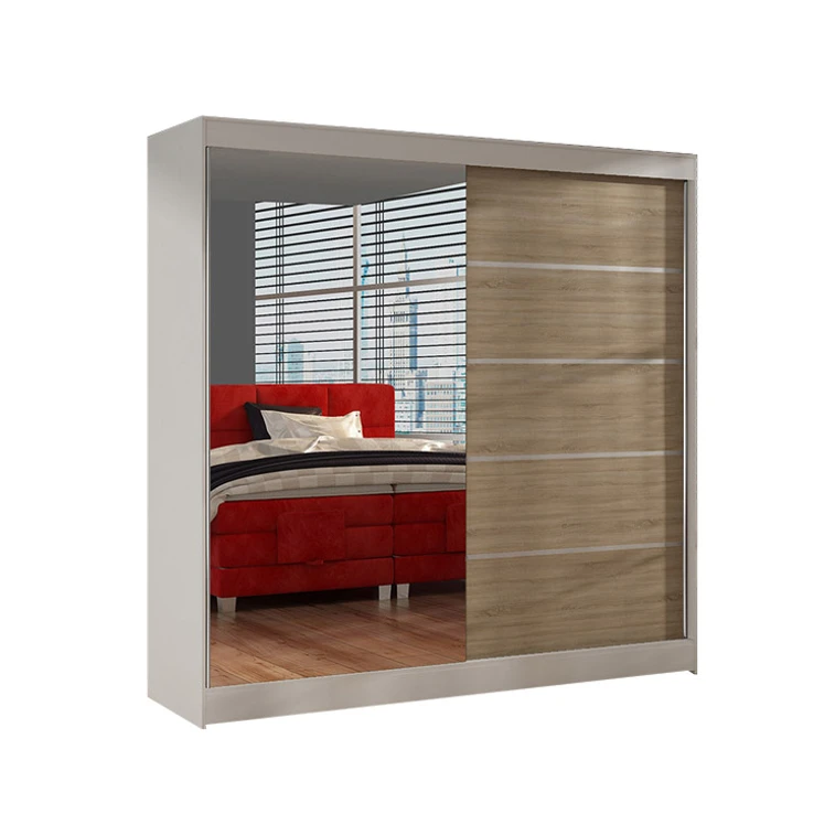 Priestranná šatníková skriňa BASTI III je vyrobená v modernom dizajne a ponúka veľké množstvo praktického úložného priestoru (viď obrázok). Neoceniteľný je systém trendových posuvných dverí so zrkadlom, ktoré uľahčujú manipuláciu a šetria priestor v interiéri. Korpus a dvere sú vyrobené z kvalitného lamina (16 mm). Šatníkovou skriňou BASTI III si môžete doplniť existujúce vybavenie izby. Údržba je jednoduchá, povrch je ľahko umývateľný, odolný voči pôsobeniu vody a zvýšenej teplote. Skriňa je dodávaná v demonte a v rôznom farebnom prevedení.
