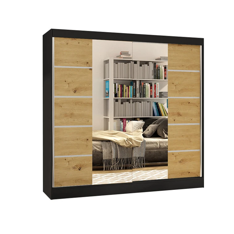 Priestranná šatníková skriňa BASTI V je vyrobená v modernom dizajne a ponúka veľké množstvo praktického úložného priestoru (viď obrázok). Neoceniteľný je systém trendových posuvných dverí so zrkadlom, ktoré uľahčujú manipuláciu a šetria priestor v interiéri. Korpus a dvere sú vyrobené z kvalitného lamina (16 mm). Šatníkovou skriňou BASTI V si môžete doplniť existujúce vybavenie izby. Údržba je jednoduchá, povrch je ľahko umývateľný, odolný voči pôsobeniu vody a zvýšenej teplote. Skriňa je dodávaná v demonte a v rôznom farebnom prevedení.