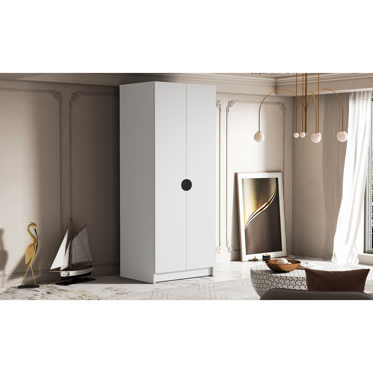Šatníková skriňa BOSTON 100 cm - biela/čierne úchytky.