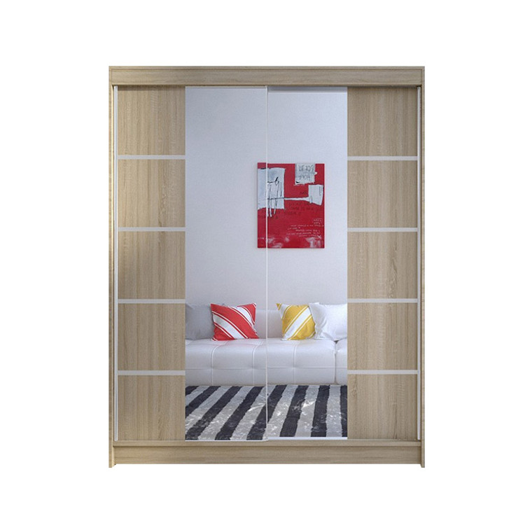 Priestranná šatníková skriňa Camino V je vyrobená v modernom dizajne a ponúka veľké množstvo praktického úložného priestoru (viď obrázok). Neoceniteľný je systém trendových posuvných dverí, ktoré uľahčujú manipuláciu a šetria priestor v interiéri. Korpus a dvere sú vyrobené z kvalitného lamina (16 mm). Šatníkovou skriňou Camino si môžete doplniť existujúce vybavenie izby. Údržba je jednoduchá, povrch je ľahko umývateľný, odolný voči pôsobeniu vody a zvýšenej teplote. Skriňa je dodávaná v demonte a v rôznom farebnom prevedení.