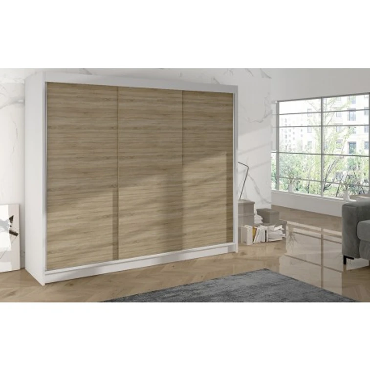 Priestranná šatníková skriňa DERBY II je vyrobená v modernom dizajne a ponúka veľké množstvo praktického úložného priestoru (viď obrázok). Neoceniteľný je systém trendových posuvných dverí, ktoré uľahčujú manipuláciu a šetria priestor v interiéri. Korpus a dvere sú vyrobené z kvalitného lamina (16 mm). Šatníková skriňa DERBY II si môžete doplniť existujúce vybavenie izby. Údržba je jednoduchá, povrh je ľahko umývateľný, odolný voči pôsobeniu vody a zvýšenej teplote. Skriňa je dodávaná v demonte a v rôznom farebnom prevedení. V prípade dotazu nás neváhajte kontaktovať.