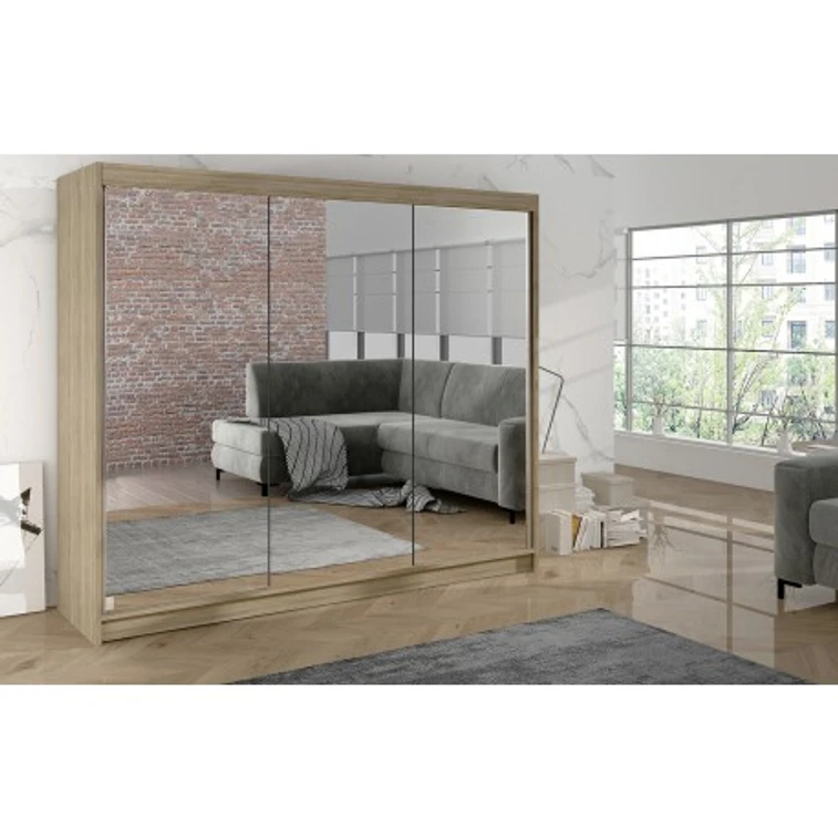 Priestranná šatníková skriňa DERBY III je vyrobená v modernom dizajne a ponúka veľké množstvo praktického úložného priestoru (viď obrázok). Neoceniteľný je systém trendových posuvných dverí so zrkadlom, ktoré uľahčujú manipuláciu a šetria priestor v interiéri. Korpus a dvere sú vyrobené z kvalitného lamina (16 mm). Šatníková skriňa DERBY III si môžete doplniť existujúce vybavenie izby. Údržba je jednoduchá, povrh je ľahko umývateľný, odolný voči pôsobeniu vody a zvýšenej teplote. Skriňa je dodávaná v demonte a v rôznom farebnom prevedení. V prípade dotazu nás neváhajte kontaktovať.