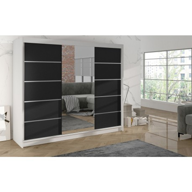 Šatníková skriňa DERBY VI - 200 cm Biela - čierna