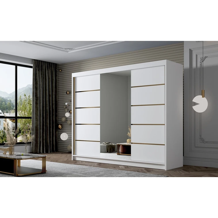 Posuvná šatníková skriňa EVO VI kombinuje klasickú jednoduchosť a moderný dizajn. Zrkadlo umiestnené na dverách dodáva svoje jedinečné kúzlo. Je ideálna ako šatníková skriňa do predsiene alebo miesto na uloženie oblečenia v spálni alebo iných drobností každodennej potreby.