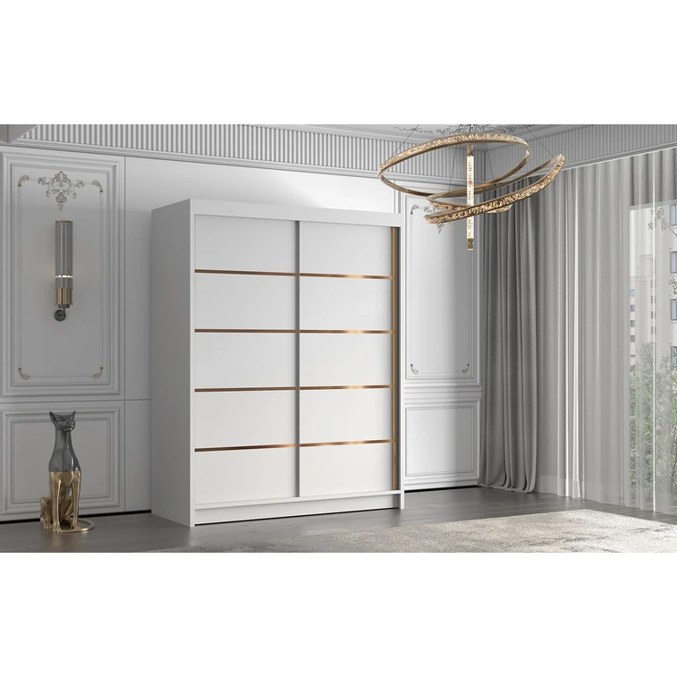 Posuvná šatníková skriňa Flavio IV kombinuje klasickú jednoduchosť a moderný dizajn. Je ideálna ako šatníková skriňa do predsiene alebo miesto na uloženie oblečenia v spálni alebo iných drobností každodennej potreby. Vnútro šatníkovej skrine je rozdelené na dve rovnaké časti. Na jednej strane sú police a na druhej strane je závesná šatníková tyč.