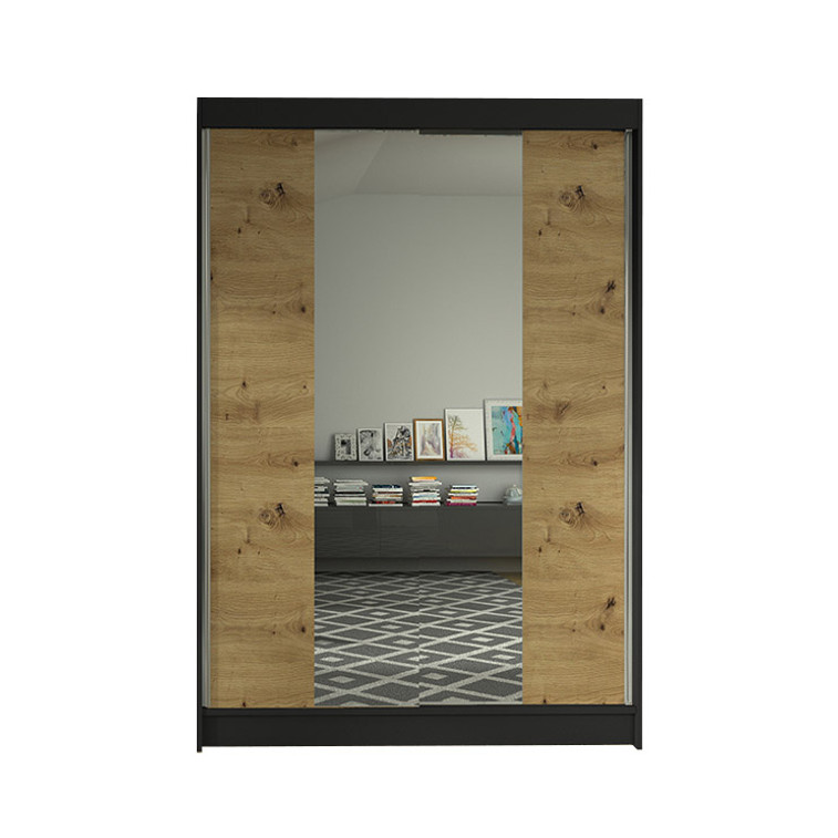 Šatníková skriňa LINO I s posuvnými dverami je vo veľmi elegantnom a praktickom prevedení. Na dverách skrine je zrkadlo. Vnútorná časť je rozdelená na dve polovice. V jednej časti sú police, v druhej časti je vešiaková tyč. Skriňa má hliníkové ložiskové pojazdy Micra Sevroll, korpus aj dvierka sú vyrobené z kvalitného lamina (16 mm). Dodávame v demontovanom stave.