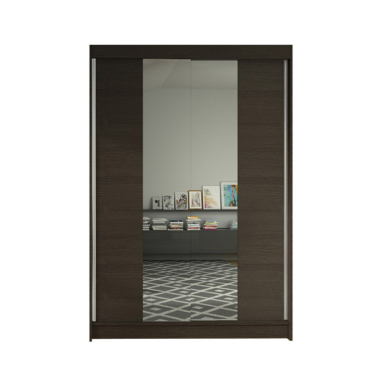 Šatníková skriňa LINO II s posuvnými dverami je vo veľmi elegantnom a praktickom prevedení. Na dverách skrine je zrkadlo. Vnútorná časť je rozdelená na dve polovice. V jednej časti sú police, v druhej časti je vešiaková tyč. Skriňa má hliníkové ložiskové pojazdy Micra Sevroll, korpus aj dvierka sú vyrobené z kvalitného lamina (16 mm). Dodávame v demontovanom stave.