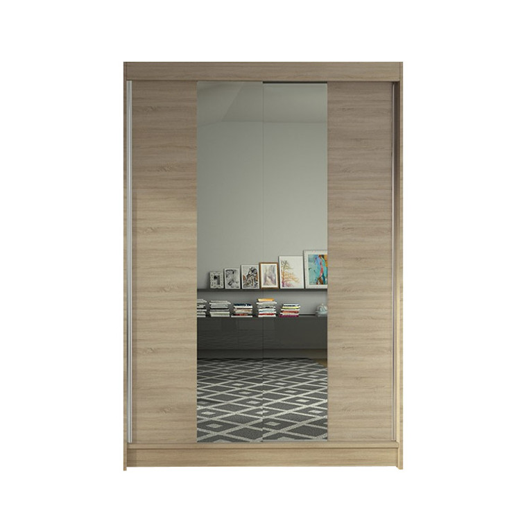 Šatníková skriňa LINO II s posuvnými dverami je vo veľmi elegantnom a praktickom prevedení. Na dverách skrine je zrkadlo. Vnútorná časť je rozdelená na dve polovice. V jednej časti sú police, v druhej časti je vešiaková tyč. Skriňa má hliníkové ložiskové pojazdy Micra Sevroll, korpus aj dvierka sú vyrobené z kvalitného lamina (16 mm). Dodávame v demontovanom stave.