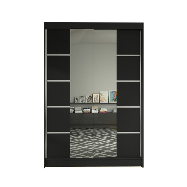 Šatníková skriňa LINO V s posuvnými dverami je vo veľmi elegantnom a praktickom prevedení. Na dverách skrine je zrkadlo. Vnútorná časť je rozdelená na dve polovice. V jednej časti sú police, v druhej časti je vešiaková tyč. Skriňa má hliníkové ložiskové pojazdy Micra Sevroll, korpus aj dvierka sú vyrobené z kvalitného lamina (16 mm). Dodávame v demontovanom stave.