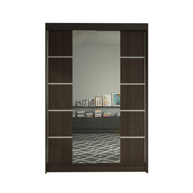 Šatníková skriňa LINO V s posuvnými dverami je vo veľmi elegantnom a praktickom prevedení. Na dverách skrine je zrkadlo. Vnútorná časť je rozdelená na dve polovice. V jednej časti sú police, v druhej časti je vešiaková tyč. Skriňa má hliníkové ložiskové pojazdy Micra Sevroll, korpus aj dvierka sú vyrobené z kvalitného lamina (16 mm). Dodávame v demontovanom stave.