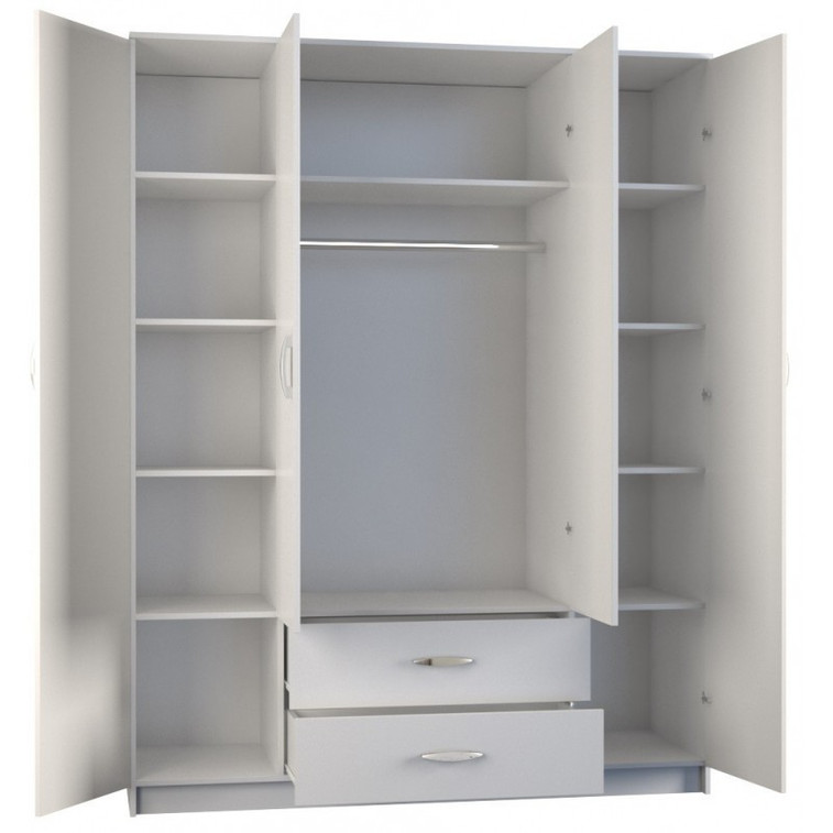 Šatníková skriňa Romana so štyrmi dvierkami a dvomi zásuvkami.
