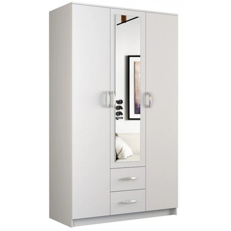 Šatníková skriňa Romana s tromi dvierkami a dvomi zásuvkami. V ľavej časti skrine sa nachádza vešiaková tyč, v pravej časti so zrkadlom sa nachádzajú police. Skriňa je vyrobená z kvalitného lamina ( 16 mm ).