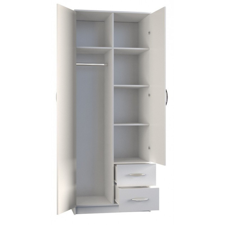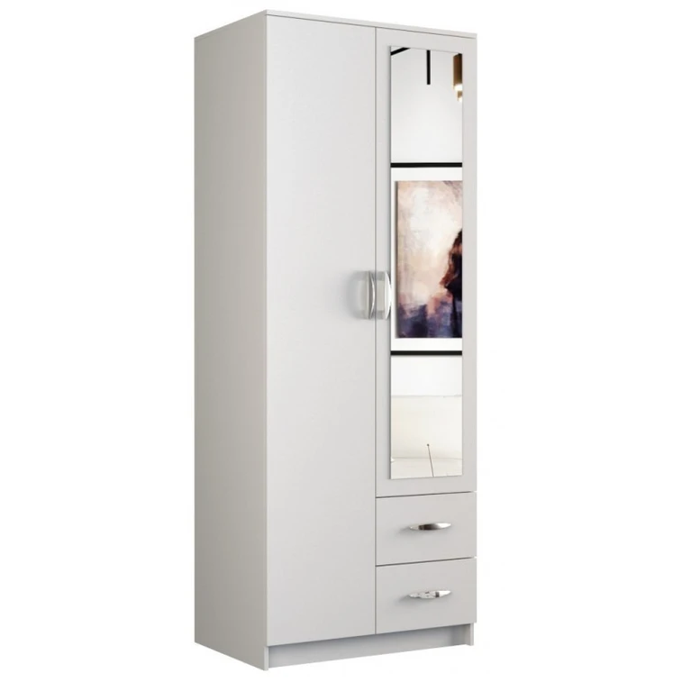 Šatníková skriňa Romana s dvomi dvierkami a dvomi zásuvkami. V ľavej časti skrine sa nachádza vešiaková tyč, v pravej časti so zrkadlom sa nachádzajú police. Skriňa je vyrobená z kvalitného lamina ( 16 mm ).