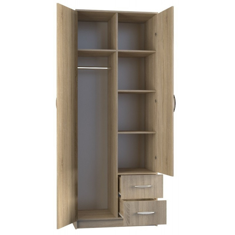 Šatníková skriňa Romana s dvomi dvierkami a dvomi zásuvkami. V ľavej časti skrine sa nachádza vešiaková tyč, v pravej časti so zrkadlom sa nachádzajú police. Skriňa je vyrobená z kvalitného lamina ( 16 mm ).
