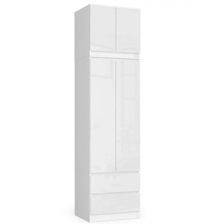 Šatníková skriňa s nadstavbou S60 2D 2SZ CLP, biela/biely lesk.