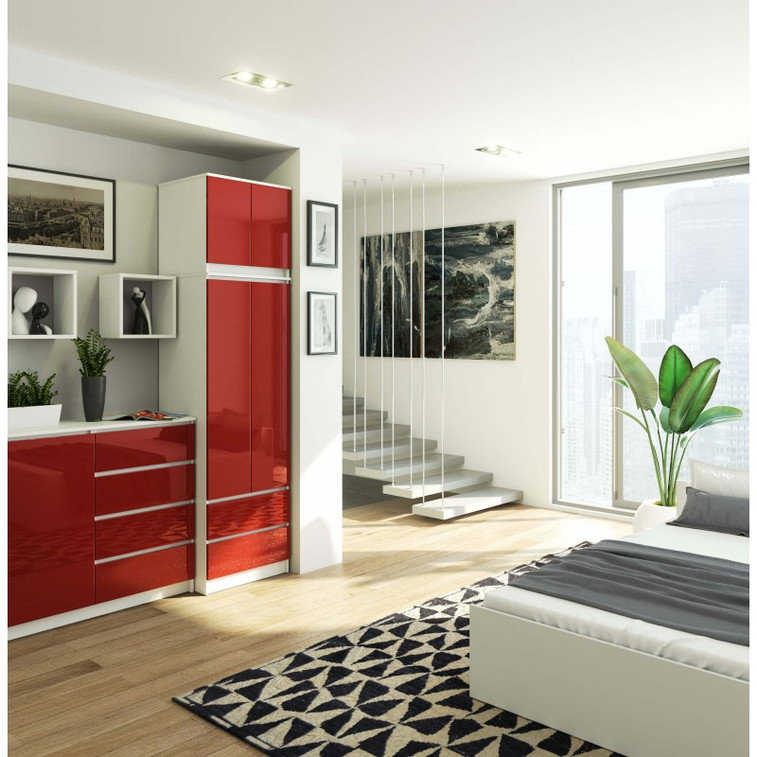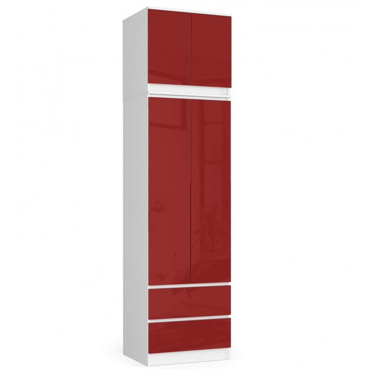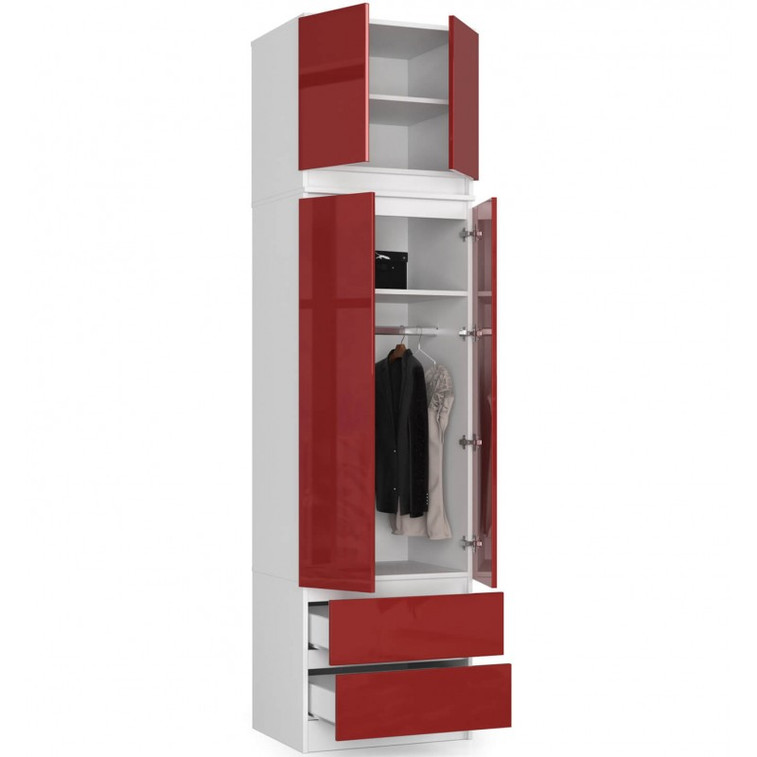 Šatníková skriňa s nadstavbou S60 2D 2SZ CLP, biela/červený lesk.
