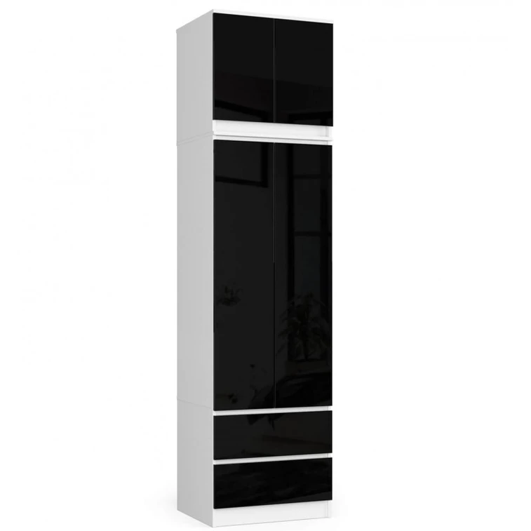 Šatníková skriňa s nadstavbou S60 2D 2SZ CLP, biela/čierny lesk.