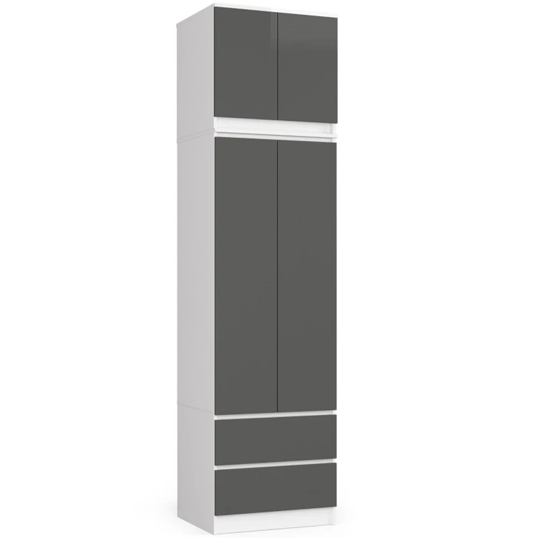 Šatníková skriňa s nadstavbou S60 2D 2SZ CLP, biela/sivá.